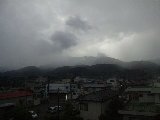 (18/08/16 09:35:58) 伊那市藤沢で雨が降りだしました。藤沢郵便局で一時運転見合わせしています。