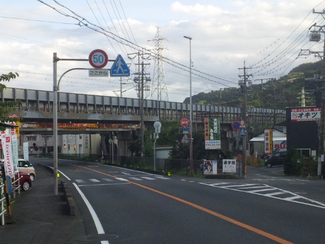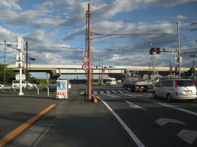 (18/08/17 17:15:08 静岡県静岡市清水区興津) 興津中町、国道52号起点です。 目の前は海なのですが、まだ触れることは出来ません。 ここから国道1号で静岡駅に向かいます。 (
