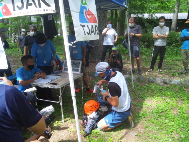 (22/08/08 08:09:04) 上高地CP。 トップ、土井さんだけ通過済み。 (