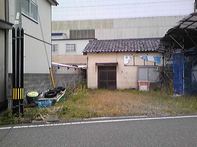 (14/10/13 13:38:07 名立) 旧名立駅跡。 自転車道は背後の工場の後ろです。 また雨です。 (
